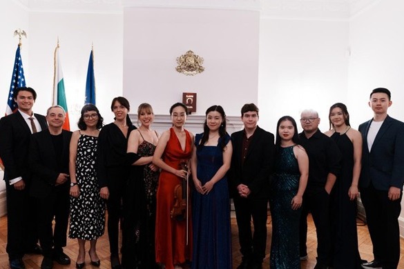 Дипломати, любители на музиката и членове на местната общност се събраха в концертната зала на посолството, изпълвайки я с внимателна тишина по време на изпълненията и оживен разговор след това на приема.