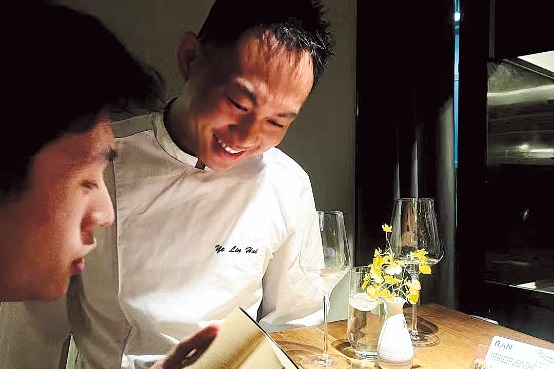 Ип Лим Фай (вдясно), предприемач след 2000 г., разговаря с клиент в своя ресторант Ran the Chef’s Table, ресторант Black Pearl, в Ксиамен, провинция Фуджиан, през август 2024 г. КИТАЙ ДАЙЛИ
