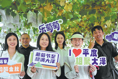 Туристи позират за снимка в гроздова градина в Пингду. КИТАЙ ДЕЙЛИ