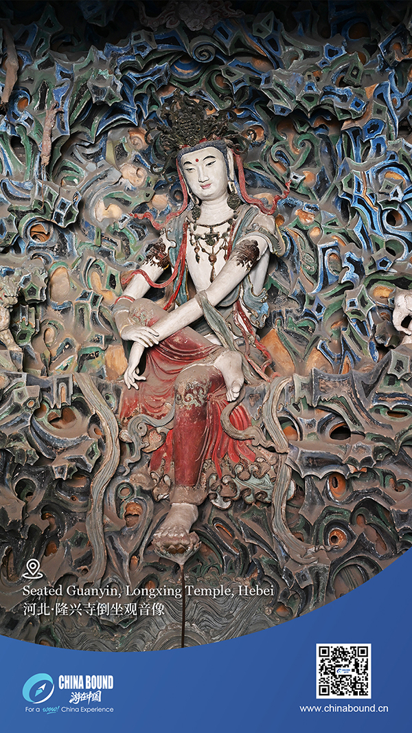 Стоейки тихо в Zhengding, храмът Longxing е издържал от династията Sui (581-618). В главната му зала спокойният „седнал назад Авалокитешвара (Гуанин)“ лежи грациозно, заобиколен от висящи скулптури като носещи се облаци – улавящи състраданието, движението и изтънчената елегантност на древното китайско изкуство в един, вечен момент.