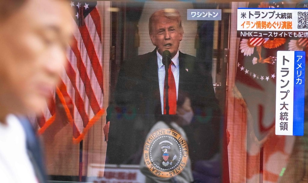NHK отказа да коментира съобщението. Мъж минава покрай телевизионен екран, показващ предаване на живо на президента на САЩ Доналд Тръмп, произнасящ национално обръщение относно войната в Иран в Токио в четвъртък. Снимка: AFPМъж минава покрай телевизионен екран, показващ предаване на живо на президента на САЩ Доналд Тръмп, произнасящ национално обръщение относно войната в Иран в Токио в четвъртък. Снимка: AFP