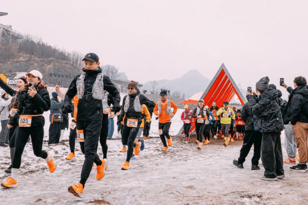 Сто участници се присъединяват към трейл състезанието на Великата стена по време на снежен ден на 1 март. [Photo provided to chinadaily.com.cn]