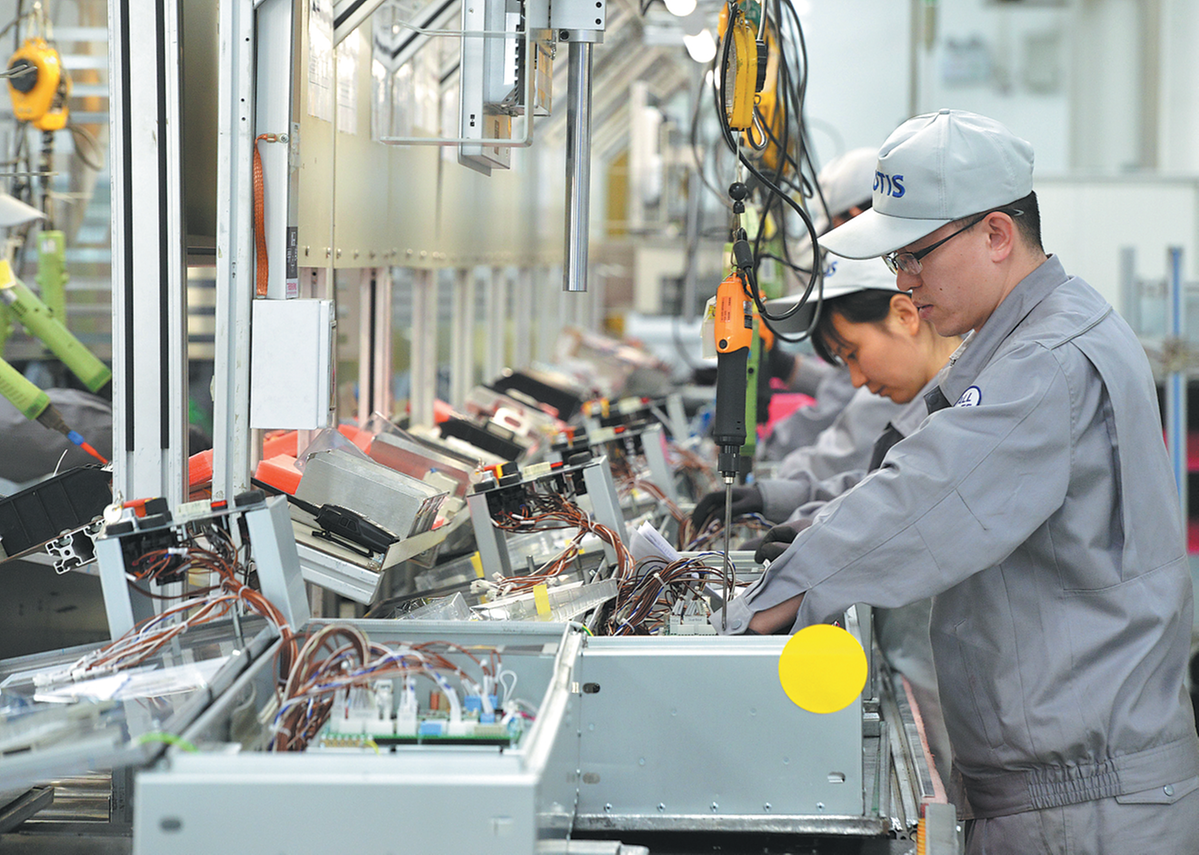 Служителите работят на поточна линия на Otis в зоната за икономическо-технологично развитие на Тиендзин, известна още като TEDA, в Тиендзин. КИТАЙ ДЕЙЛИ